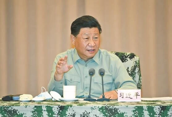 8月20日上午,中共中央总书记、国家主席、中央军委主席习近平在听取军队参与防汛救灾情况汇报后发表重要讲话。新华社记者 李刚 摄