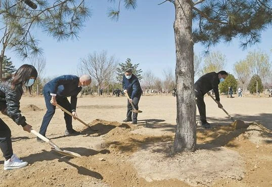 在京中共中央政治局委员、中央书记处书记、国务委员等参加植树活动。