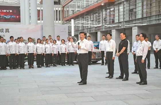 企业展厅里,习近平察看了最新款式的整车产品,了解集团创新驱动、体制机制创新、产业结构优化升级情况,并同职工代表简短交流。他强调,推动我国汽车制造业高质量发展,必须加强关键核心技术和关键零部件的自主研发,实现技术自立自强,做强做大民族品牌。当今世界制造业竞争激烈,要抢抓机遇,大力发展战略性新兴产业,实现弯道超车。希望大家发愤图强、不负韶华,在推动东北振兴中奉献聪明才智,在实现中华民族伟大复兴中国梦的进程中书写壮丽的青春华章。