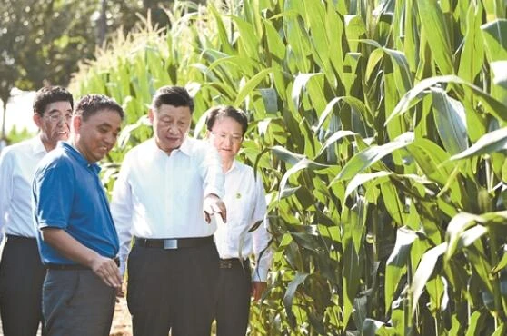 习近平走进玉米地,察看黑土地实验样品和玉米优良品种展示,了解农业科技研发利用、黑土地保护情况。习近平强调,农业现代化,关键是农业科技现代化。要加强农业与科技融合,加强农业科技创新,科研人员要把论文写在大地上,让农民用最好的技术种出最好的粮食。要认真总结和推广梨树模式,采取有效措施切实把黑土地这个“耕地中的大熊猫”保护好、利用好,使之永远造福人民。