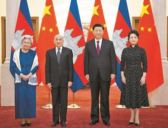 西哈莫尼表示,习近平主席和夫人给予我们隆重礼遇,使我们深切感受到中国人民对柬埔寨人民的深情厚谊。我刚刚专程访问了陕西延安,对中国共产党领导中国人民自强不息、艰苦奋斗取得的伟大成就感到由衷敬佩,也深切体会到习近平主席以人民为中心的思想。我愿同习近平主席一道,继承和发扬两国老一辈领导人缔结的深厚友谊,谱写柬中友好合作的新篇章。衷心祝愿中国在习近平主席领导下取得新的更大发展。