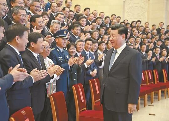 上午10时,习近平等来到京西宾馆会议楼前厅,全场响起热烈掌声。习近平等走到代表们中间,同大家亲切交流并合影留念。