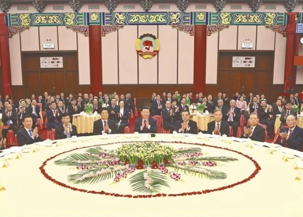 12月31日,全国政协在北京举行新年茶话会。党和国家领导人习近平、李克强、栗战书、汪洋、王沪宁、赵乐际、韩正、王岐山出席茶话会并观看演出。新华社记者 鞠鹏 摄