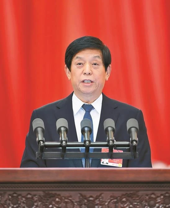 受全国人大常委会委托,栗战书委员长向大会报告全国人大常委会工作。栗战书在报告中指出,在以习近平同志为核心的党中央坚强领导下,全国人大常委会坚持以习近平新时代中国特色社会主义思想为指导,深入贯彻习近平法治思想,履职尽责、积极作为,为推动重大工作部署、应对重大风险挑战、维护国家安全提供法律保障,有效发挥了国家权力机关的职能作用。