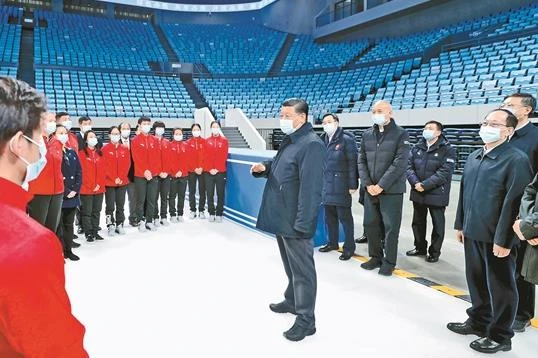 首都体育馆是国内第一座人工室内冰场,经过改扩建已具备冬奥会短道速滑和花样滑冰比赛训练条件。习近平走到训练场边,察看场馆改造情况,同国家花样滑冰队和短道速滑队运动员、教练员代表亲切交流。习近平指出,建设体育强国,是全面建设社会主义现代化国家的一个重要目标。体育强国的基础在于群众体育。要通过举办北京冬奥会、冬残奥会,推动我国冰雪运动跨越式发展,补缺项、强弱项,逐步解决竞技体育强、群众体育弱和“夏强冬弱”、“冰强雪弱”的问题,推动新时代体育事业高质量发展。提高现代竞技体育水平,既要靠气力,也要靠技力。运动员要有为国争光、勇创佳绩的志气,夏练三伏、冬练三九,加强技术创新,学习借鉴国外先进理念和技术,不断提高训练和比赛水平。
