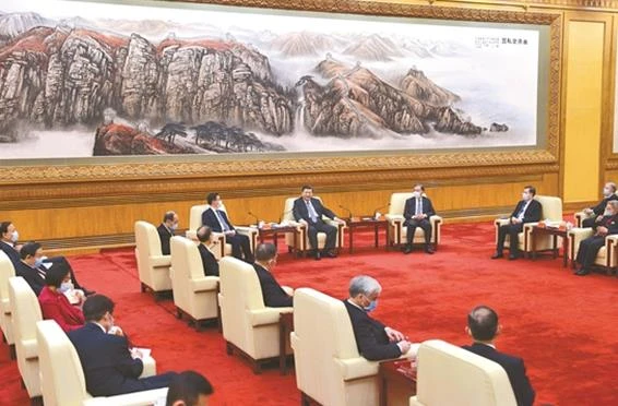 习近平强调,2021年是实施“十四五”规划、开启全面建设社会主义现代化国家新征程的第一年,我们将隆重庆祝中国共产党成立100周年。希望大家全面贯彻中共十九大和十九届二中、三中、四中、五中全会精神,全面总结和展示同中国共产党团结奋斗、风雨同舟的光辉历程,引导广大成员继承和发扬光荣传统,坚定中国特色社会主义理想信念,坚持和完善中国共产党领导的多党合作和政治协商制度,围绕把握新发展阶段、贯彻新发展理念、构建新发展格局,积极建言资政,广泛汇集共识,以一往无前的奋斗姿态、风雨无阻的精神状态,谱写新时代多党合作事业新篇章。