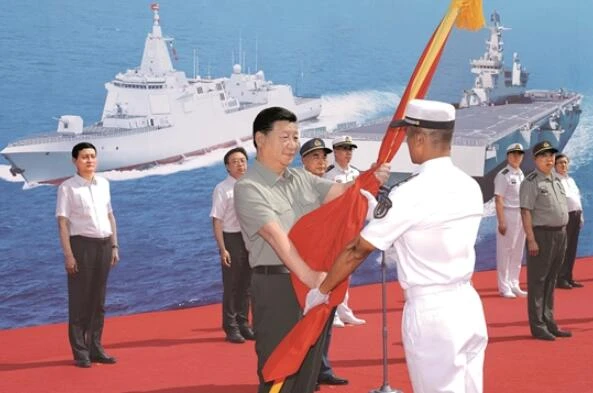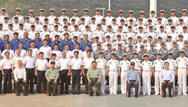 4月23日,海军三型主战舰艇——长征18号艇、大连舰、海南舰在海南三亚某军港集中交接入列。中共中央总书记、国家主席、中央军委主席习近平出席交接入列活动并登上舰艇视察。