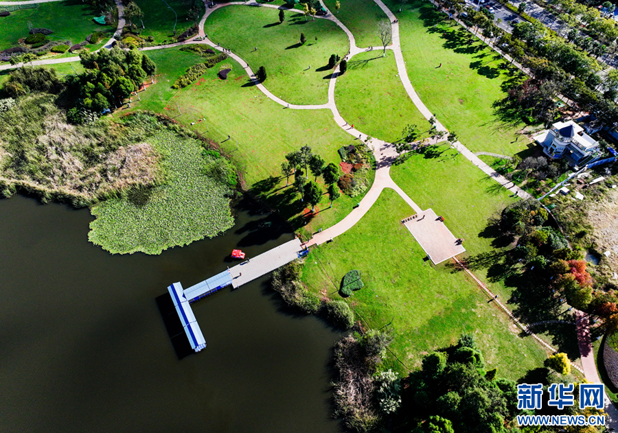 航拍冬日里的昆明西亮塘湿地公园(11月22日摄)。新华网发(供图)