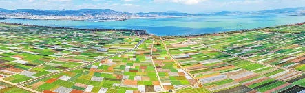 冬日暖阳下,通海县15万亩标准化农田田埂笔直,滴灌管道纵横交错,莴苣、白菜、花椰菜等压茬轮种的蔬菜长势喜人,一派生机盎然的丰收景象。通海县得天独厚的气候条件,可实现一年种植4至5茬蔬菜,四季外销、全年无休的生产节奏成就其“西南菜仓”的美誉。目前,该县培育“二品一标”品种67个,绿色食品64个、认证面积6.5万亩,70%的蔬菜销往全国130多个大中城市,30%出口东南亚及中东国家,占云南省农产品出口量的三分之一以上。图为通海县一望无垠的多彩田园。(记者 陈飞 摄)