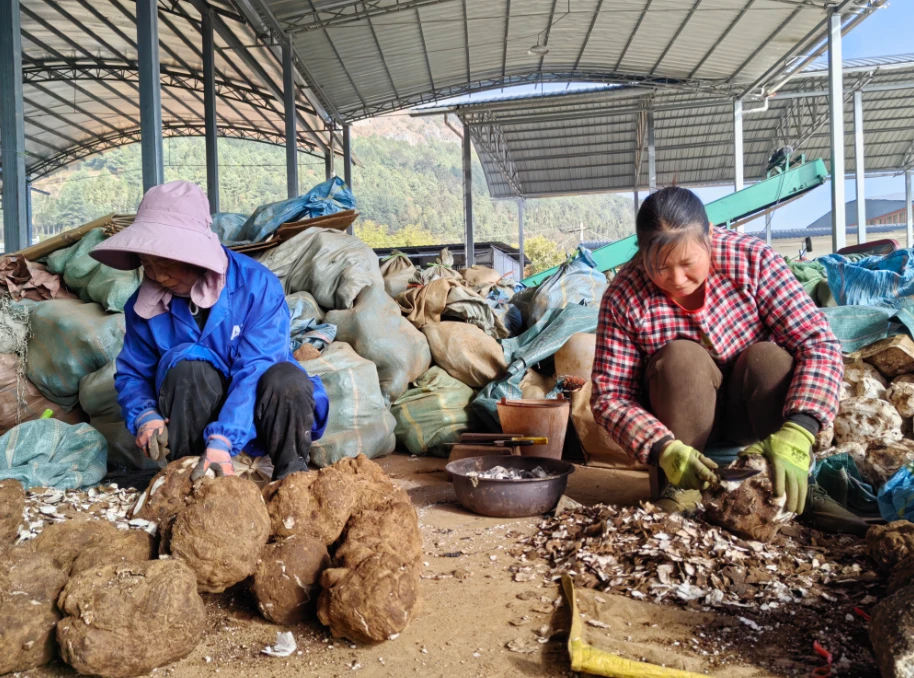 腾冲市明光镇中塘村老华寨村民给茯苓削皮。李盛中 摄