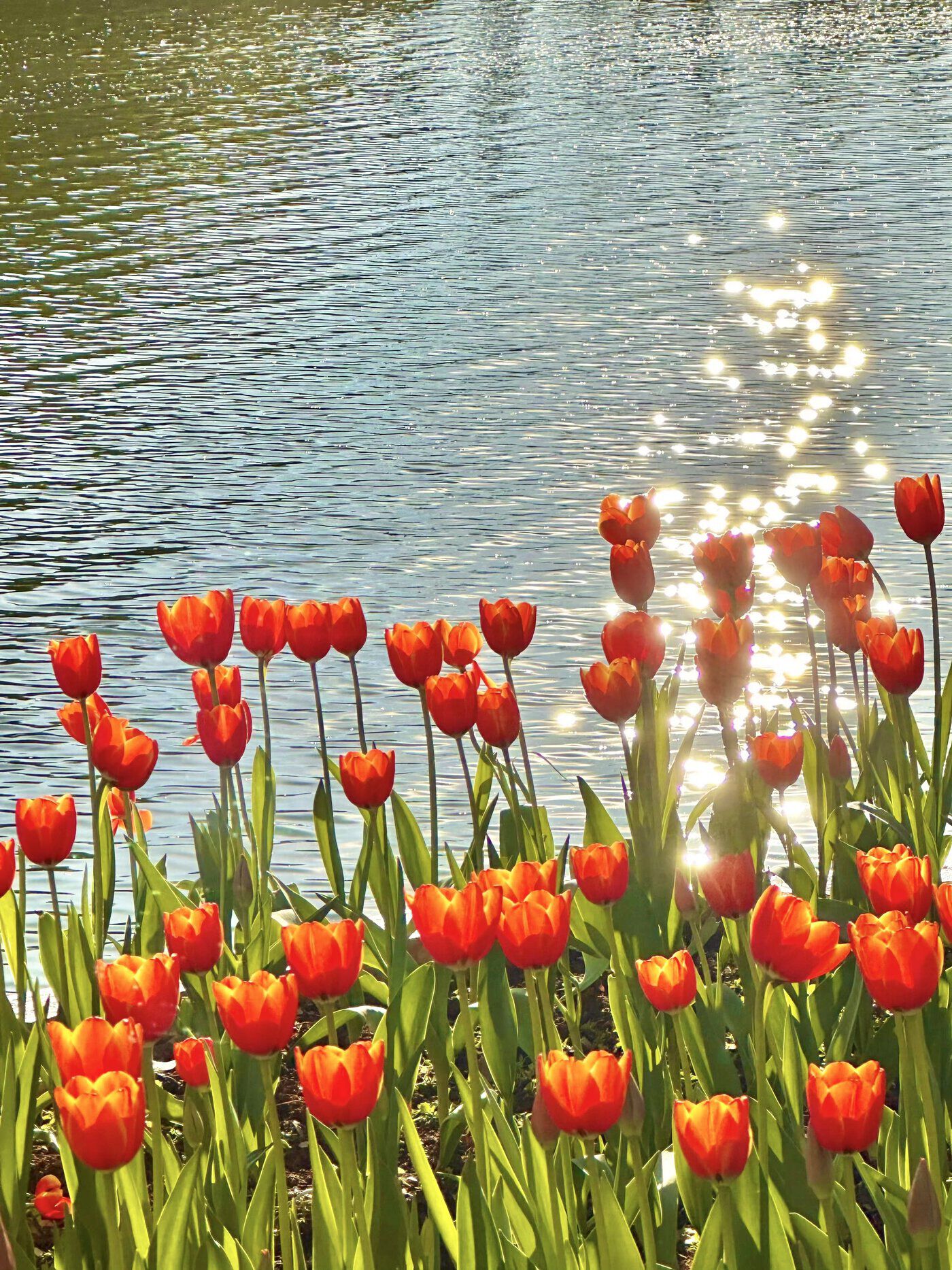 每一支郁金香都在进行光的魔术——正午时分明艳似珐琅彩釉,待到夕阳斜照,又化作浮动的丝绸灯罩,将余晖滤成蜜色光雾。