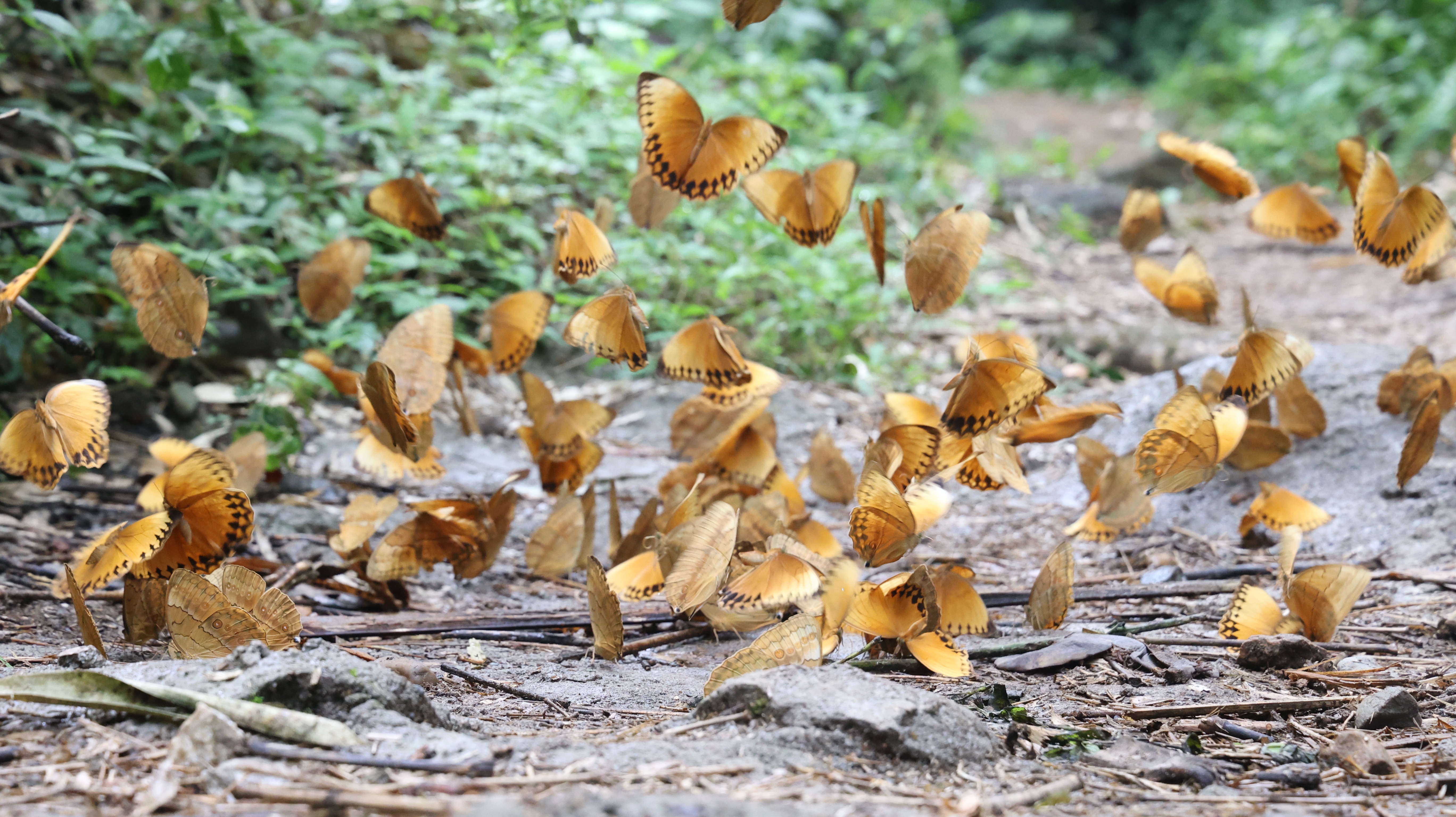 每年5、6月份,中国·红河蝴蝶谷内的箭环蝶幼虫在短时间内大量集中羽化成蝶,在山林间、小溪旁、村庄内大量聚集形成漫天飞舞的生态奇观。