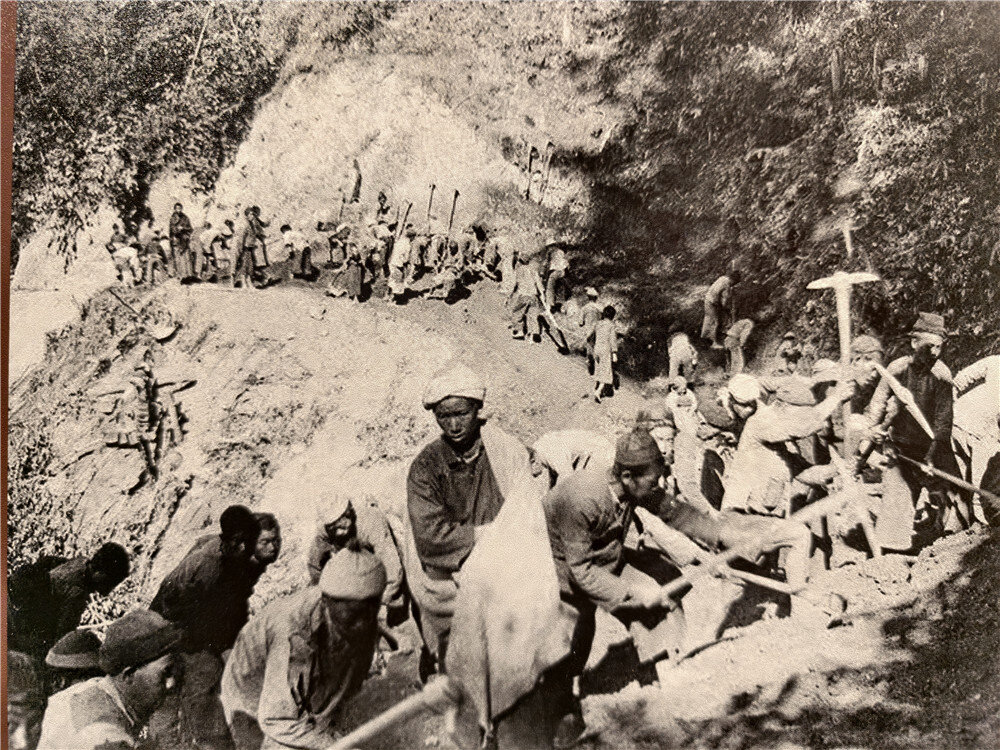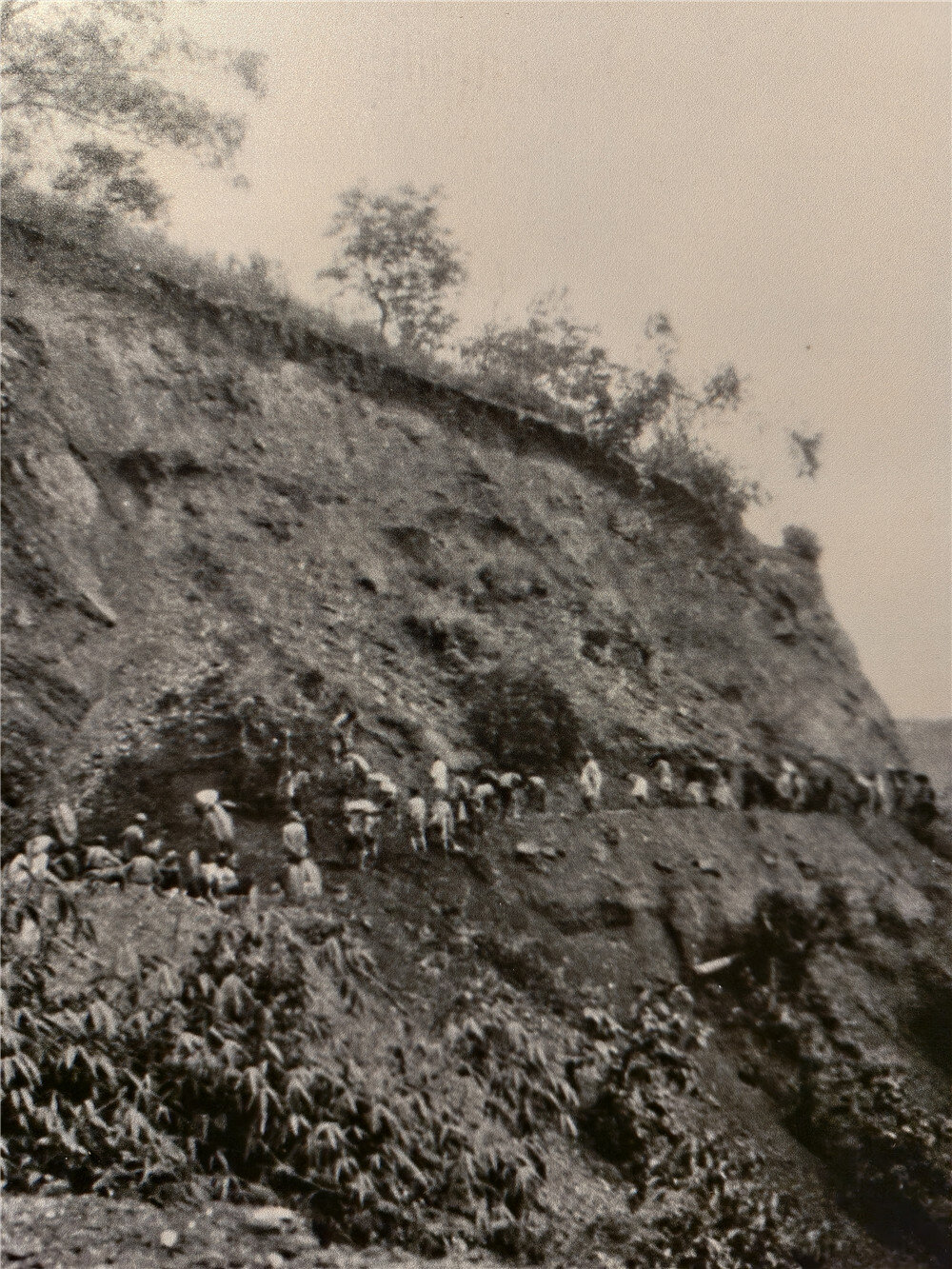 漾濞县的民工修筑滇缅公路时几乎没有任何工程机械(漾濞县档案馆)