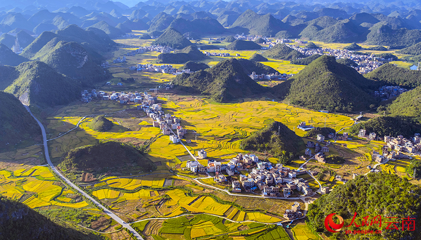 原标题:云南广南:万亩八宝米丰收金色稻田如诗如画