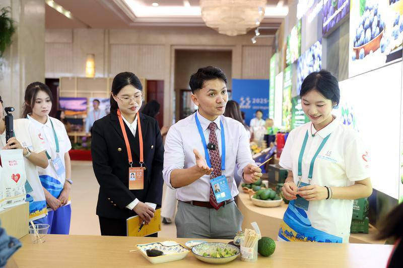 9月16日,2025“一带一路”媒体合作论坛上,缅甸国际广播电台的瑞德班通过网络介绍云南咖啡、牛油果等高原特色农产品。
