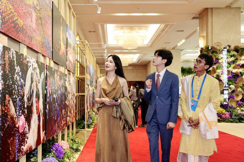 9月16日,在2025“一带一路”媒体合作论坛现场,来自国内及柬埔寨、印度的网络达人参观“世界花园彩云南”摄影展。