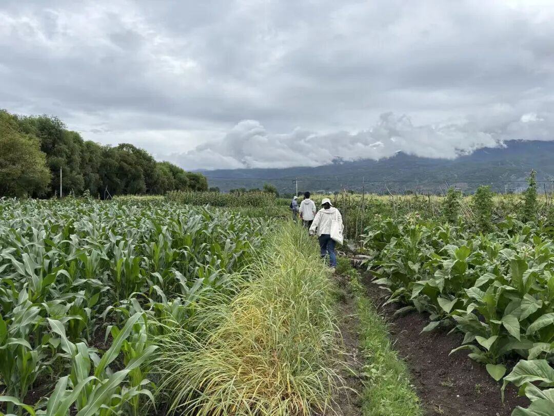 清晨雨后的海门口,浓雾仍锁在山腰上,我们沿着田埂、踩着泥泞,一手拿着拍摄设备,一手拨开锋利的玉米叶子,就这样走进了海门口遗址曾经发掘的核心区。