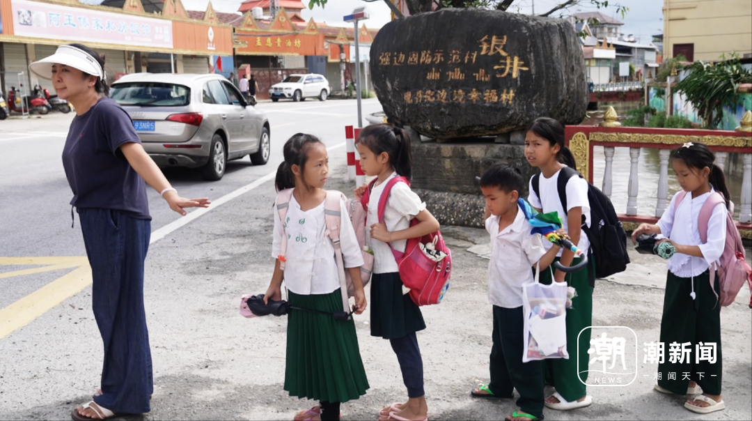 课堂上,老师们也通常会采用普通话、傣语、缅语三语教学。学校老师每天放学都会护送这群孩子,从学校步行至银井边防站,孩子们再通关返回缅甸。这段跨越两国的上学路程并不长,步行约10分钟。