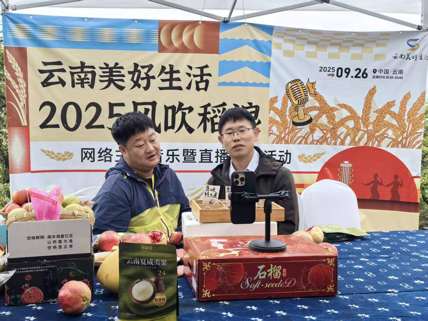 9月26日,以“庆农业丰收 享美好生活”为主题的“‘云南美好生活·2025风吹稻浪’网络主题音乐暨直播带货活动”在大理州洱源县凤羽镇即将成熟的稻田中间举行。