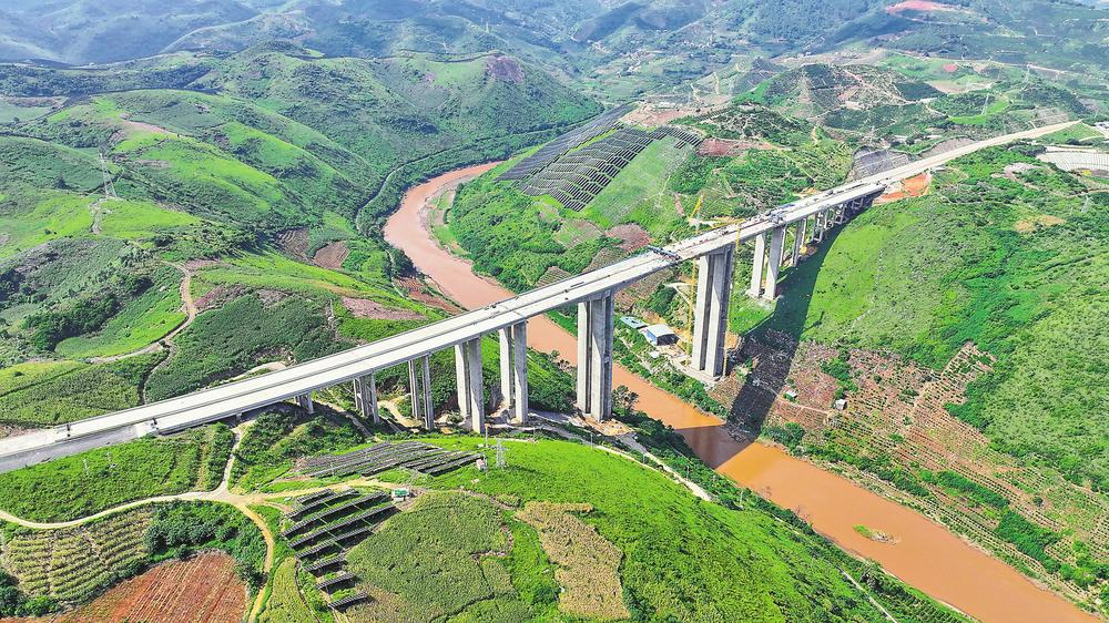 日前,随着最后一方混凝土浇筑完成,弥勒至玉溪高速公路项目南盘江特大桥顺利合龙,标志着全线最后一项控制性工程被攻克。