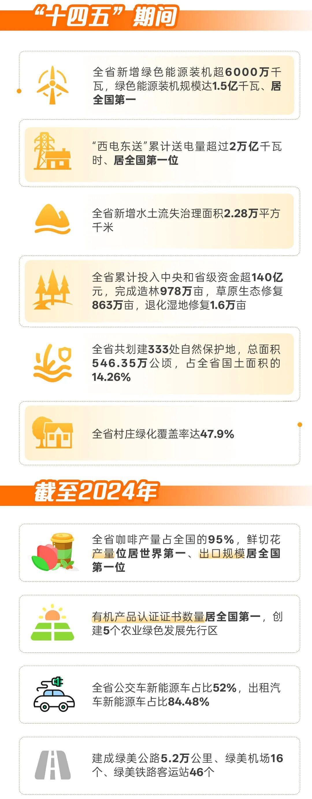 “十四五”时期,省委、省政府紧紧围绕生态文明建设排头兵的战略定位,坚定不移走生态优先、节约集约、绿色低碳发展道路,全力筑牢国家西南生态安全屏障,推动全省生态文明建设取得显著成效。