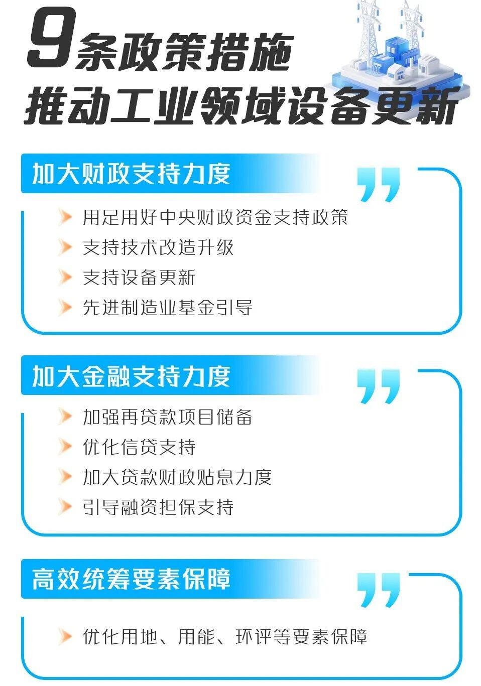 为加大力度支持工业企业实施设备更新和技术改造,推动制造业高端化、智能化、绿色化发展,云南省工业和信息化厅等三部门印发《云南省加力推动工业领域设备更新9条政策措施》,从加大财政支持力度、加大金融支持力度等3方面提出9条政策措施。