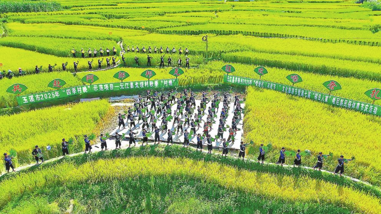 秋意渐浓,稻谷飘香。近日,元江哈尼族彝族傣族自治县的万亩梯田披上“金装”,当地哈尼族群众迎来一年一度庆祝丰收、感恩自然的重要传统节日“喍奢扎”节,梯田之上处处洋溢着丰收的喜悦。