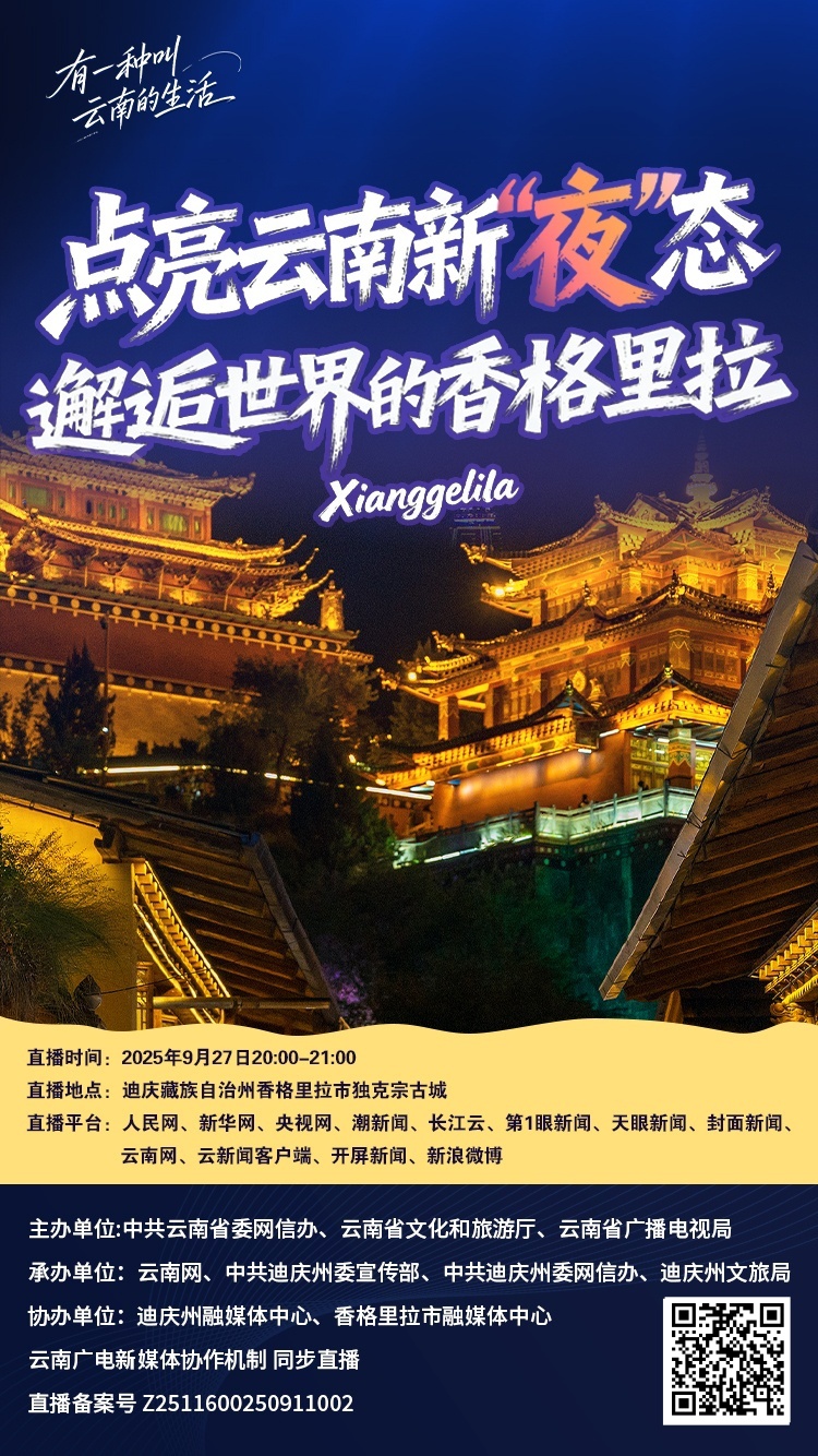 当最后一缕夕阳沉入雪山之巅,香格里拉的夜在飞舞的经幡与古城的灯火中苏醒。9月27日,“有一种叫云南的生活——点亮云南新‘夜’态・邂逅世界的香格里拉”网络主题传播活动在迪庆藏族自治州香格里拉独克宗古城启幕。