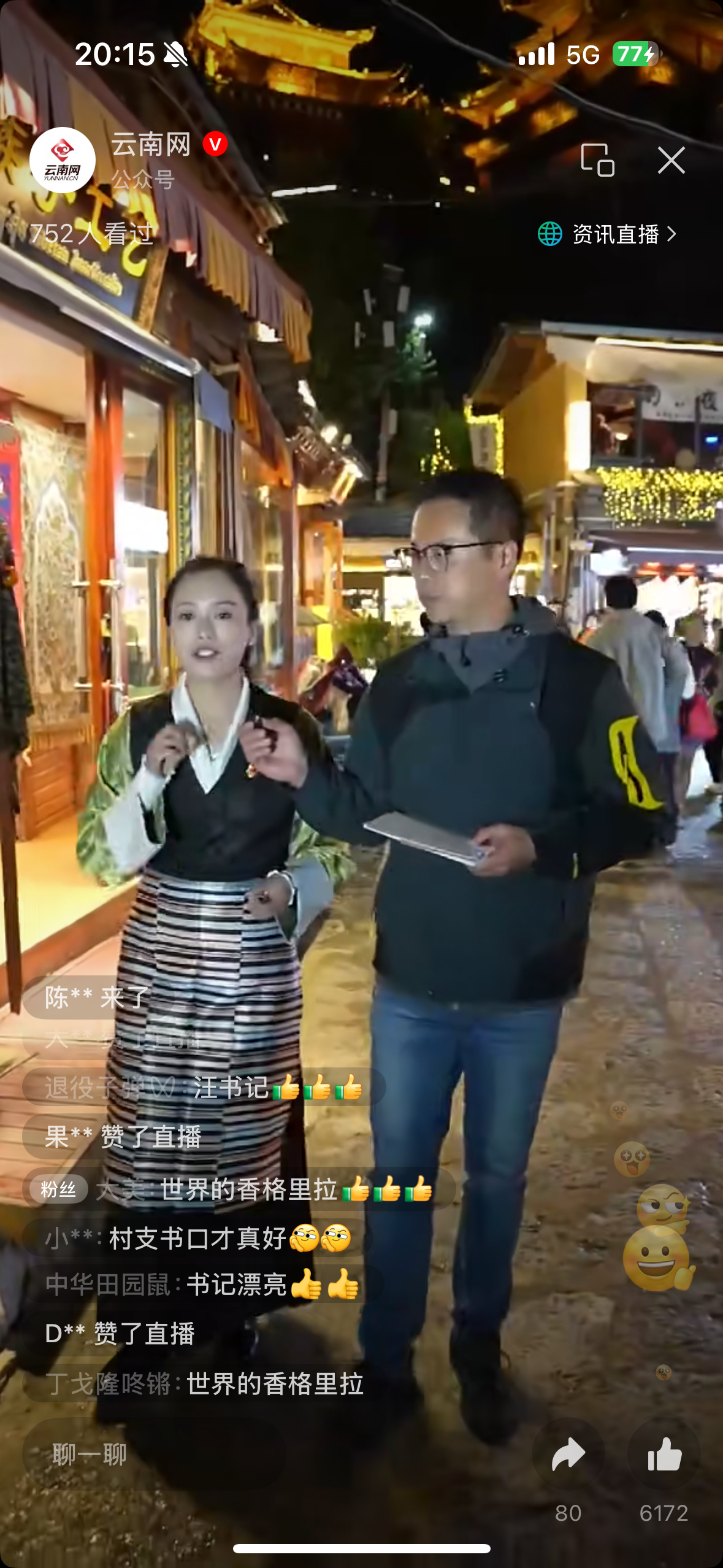香格里拉市建塘镇金龙社区的党总支书记汪源也来到直播间,和主持人一起带领大家“逛古城”,介绍如今的发展情况。独克宗古城作为历史上滇、川、藏茶马互市的重要枢纽,千百年来,不同的民族、不同的文化在这里碰撞、融合。如今,古老的藏房在夜色中焕发出新的活力,摇身一变成为了温暖的民宿和充满文艺气息的咖啡馆。