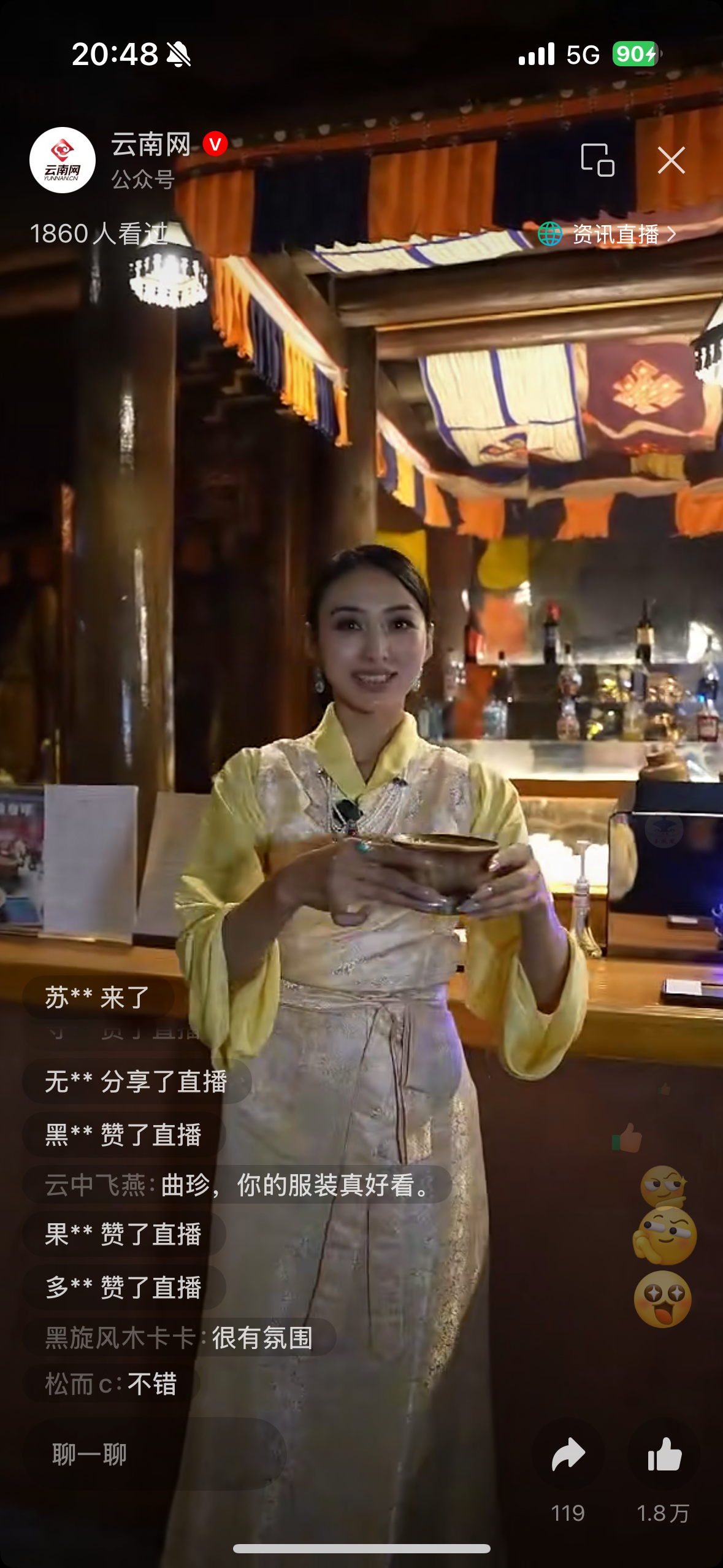 除了现场的网络达人互动,@漫步苍洱、@深一度等自媒体也在抖音、快手、微博视频、微信视频号等多个直播主体同时进行直播。他们通过镜头,将独克宗古城的美丽夜景、非遗体验的精彩瞬间以及网络达人的互动场景,实时传递给全国各地的观众。