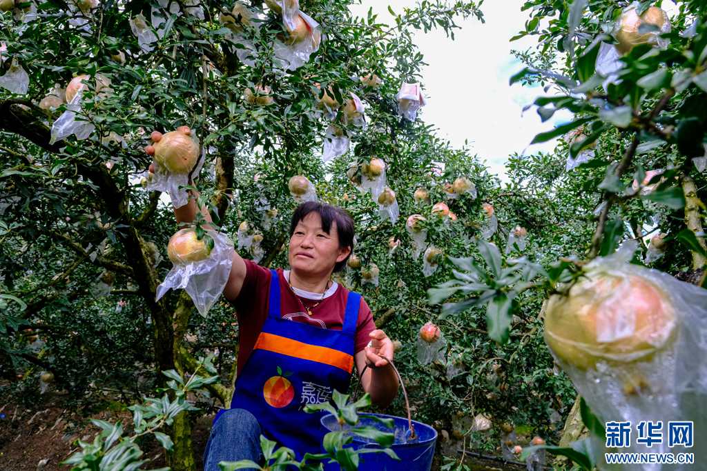 采收石榴(10月3日摄)。新华网发(张洪科 摄)
