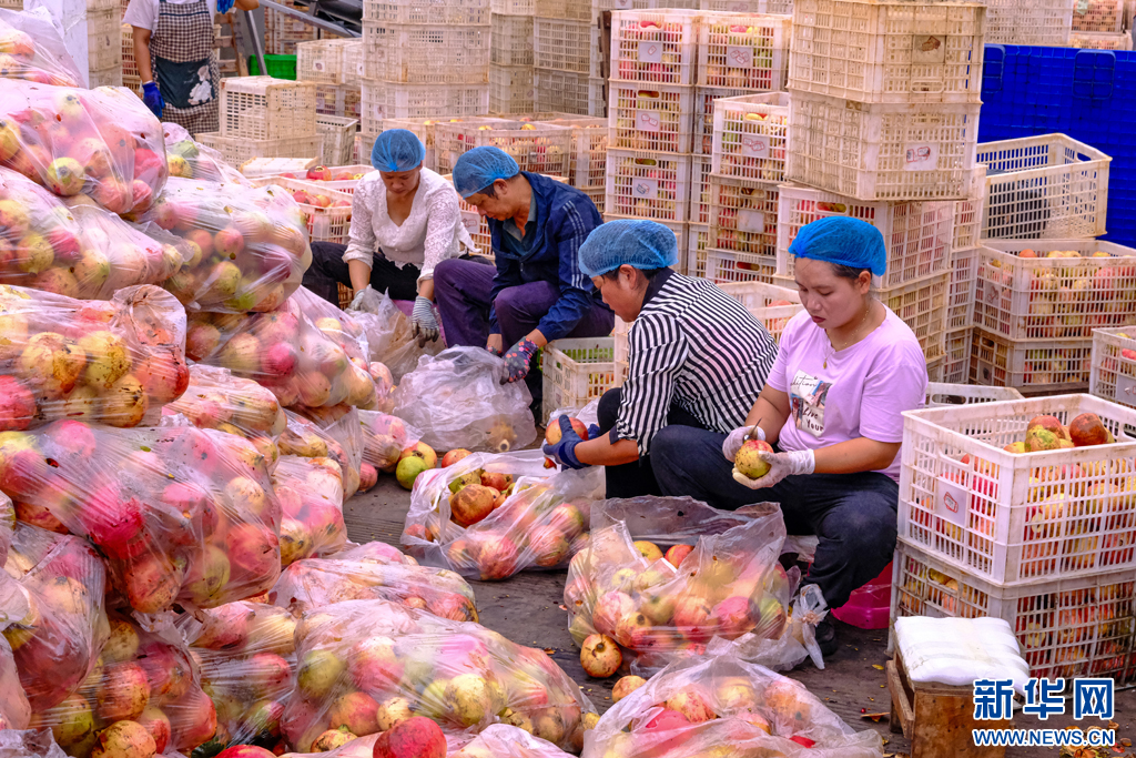 工人分拣石榴(10月3日摄)。新华网发(张洪科 摄)