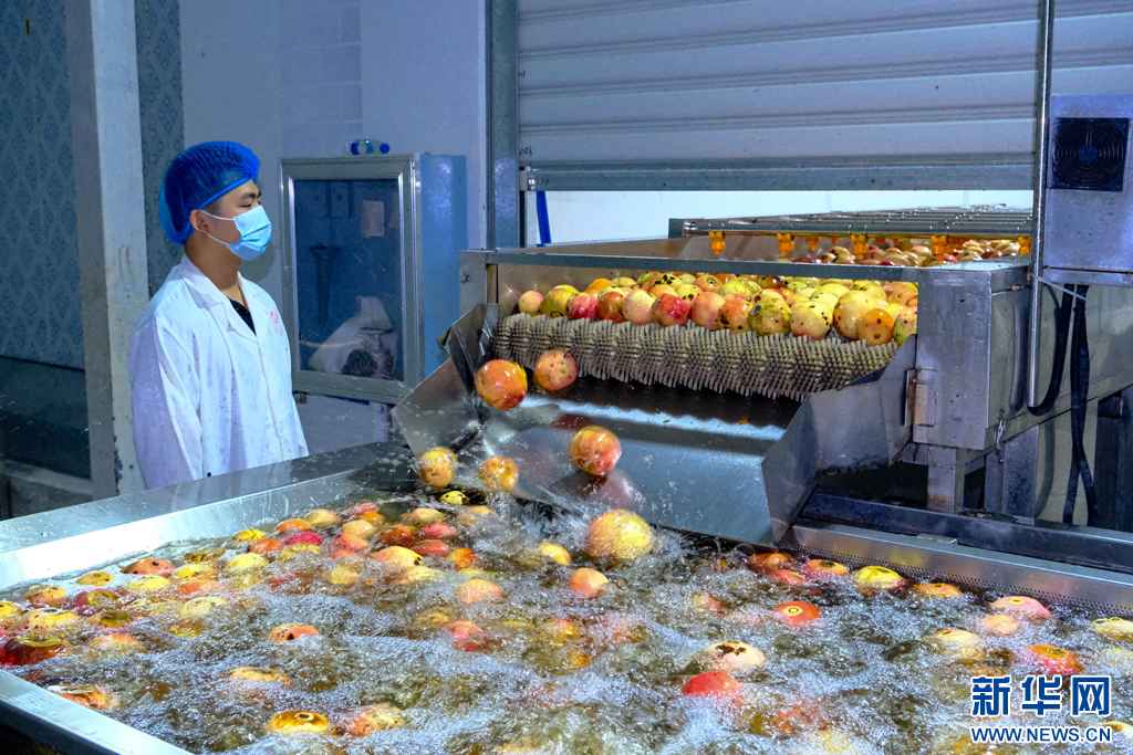石榴饮品生产车间一角(10月3日摄)。新华网发(张洪科 摄)