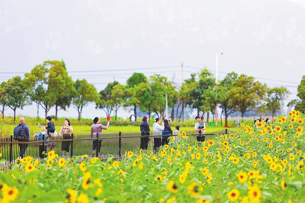 昆明福保半岛向日葵花海吸引游客驻足拍照。记者 胡妤雅 摄