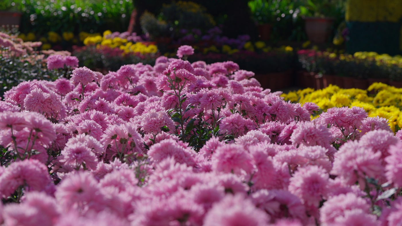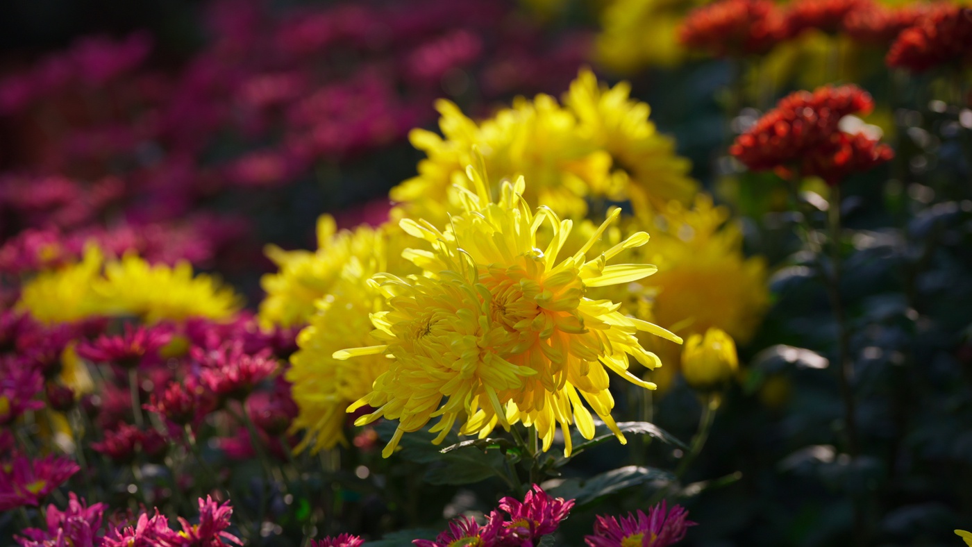 一簇簇姹紫嫣红、形态万千的秋菊映入眼帘