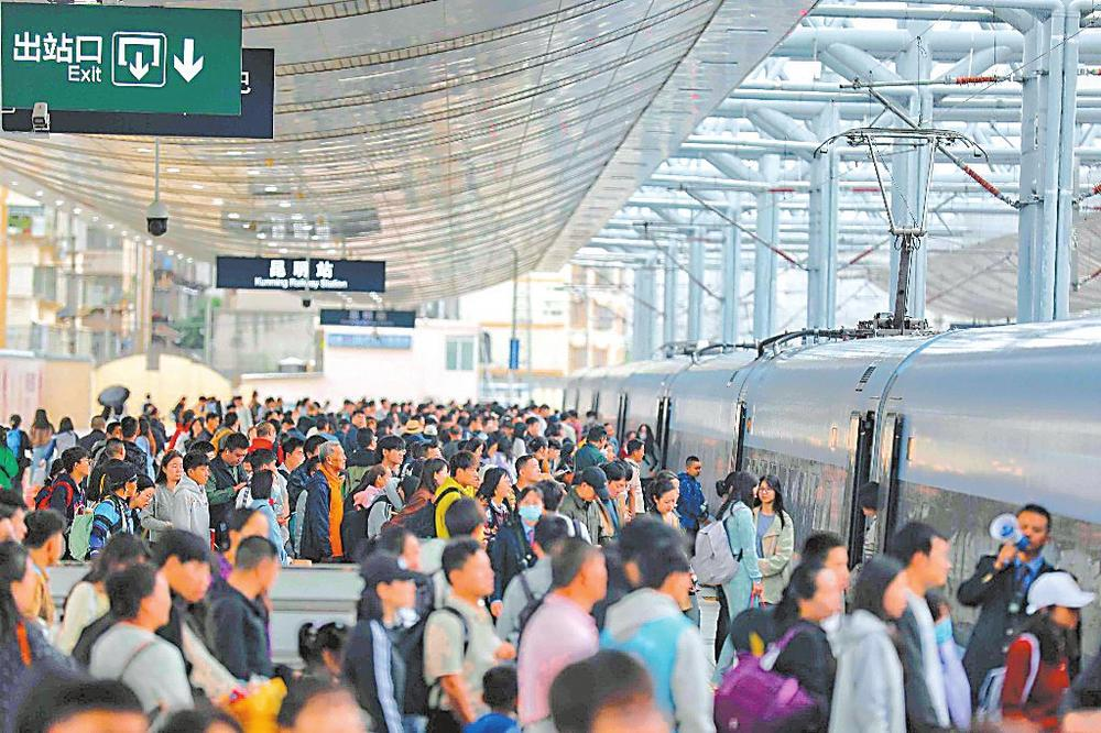 10月8日,国庆中秋假期进入尾声,云南各地迎来返程客流高峰,铁路、公路和航空等部门多措并举,确保旅客安全顺畅返程。