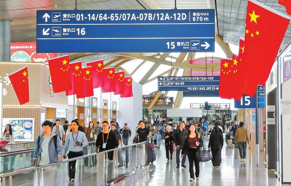昆明长水国际机场返程客流秩序井然。杨峥 摄