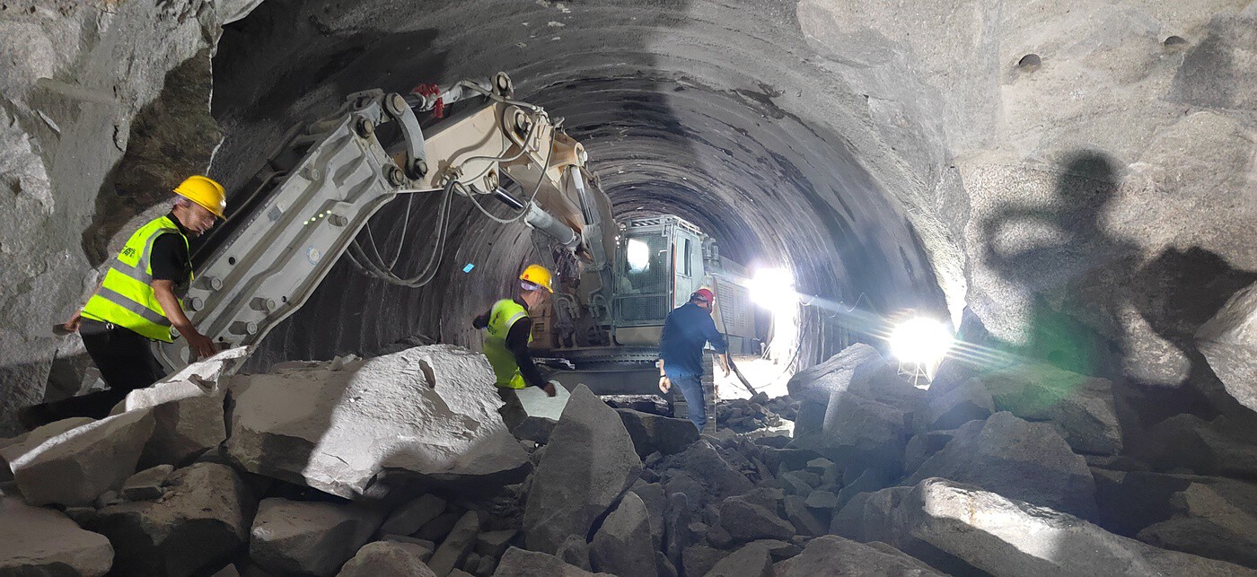 面对困境,指挥部迅速组织技术力量精准研判,果断调整设备配置策略,督促施工单位在隧道出口端开辟新作业面,并在进出口两端分别配备65吨级大型岩挖机,同步配置配套破碎锤、双臂钻机凿岩台车双向掘进,成功破解高强度完整围岩掘进难题,大幅提升施工效率,实现了隧道在水库大坝保护核心区的“静默”穿越。