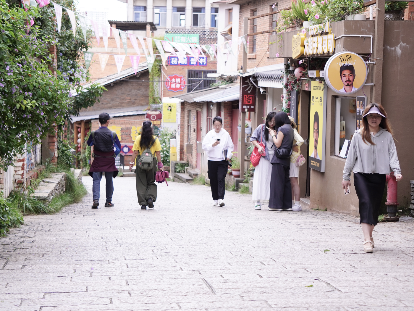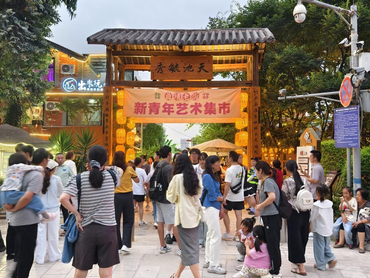今年八月,“曲靖老街 新青年艺术集市”开市,60多个创意摊位沿街排开,十天日均客流突破五万。