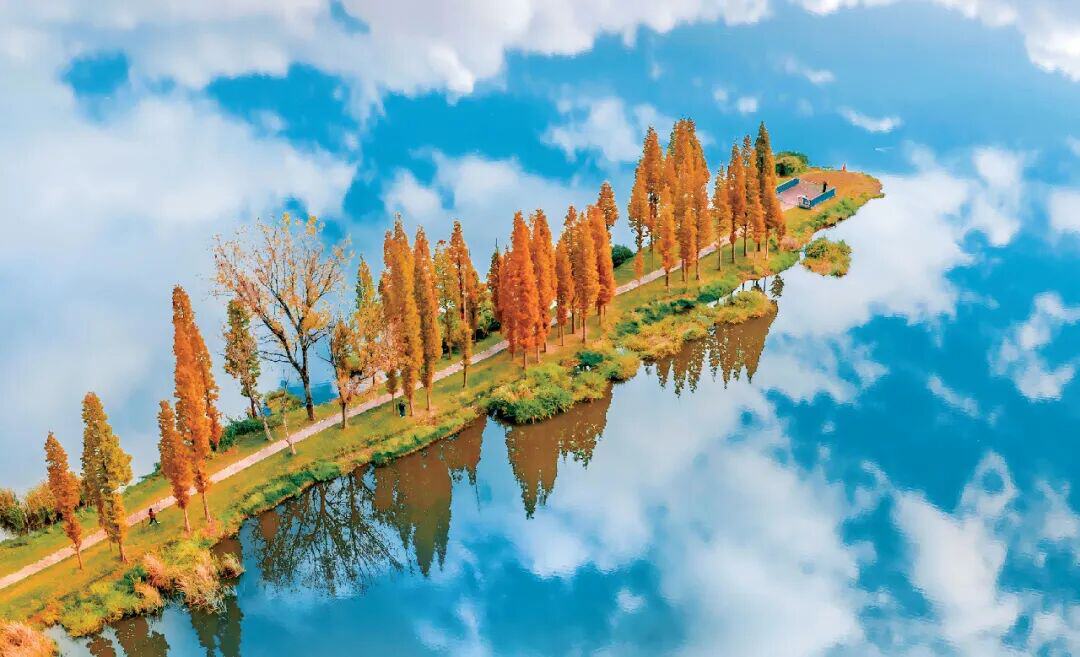 2024年,昆明市主城区环境空气质量有223天达到优级,较2023年增加34天,空气常新、蓝天常在成为春城常态。图为滇池草海湿地的“天空之镜”,蓝天白云倒映在湖面上,令人如痴如醉。李维梅/摄