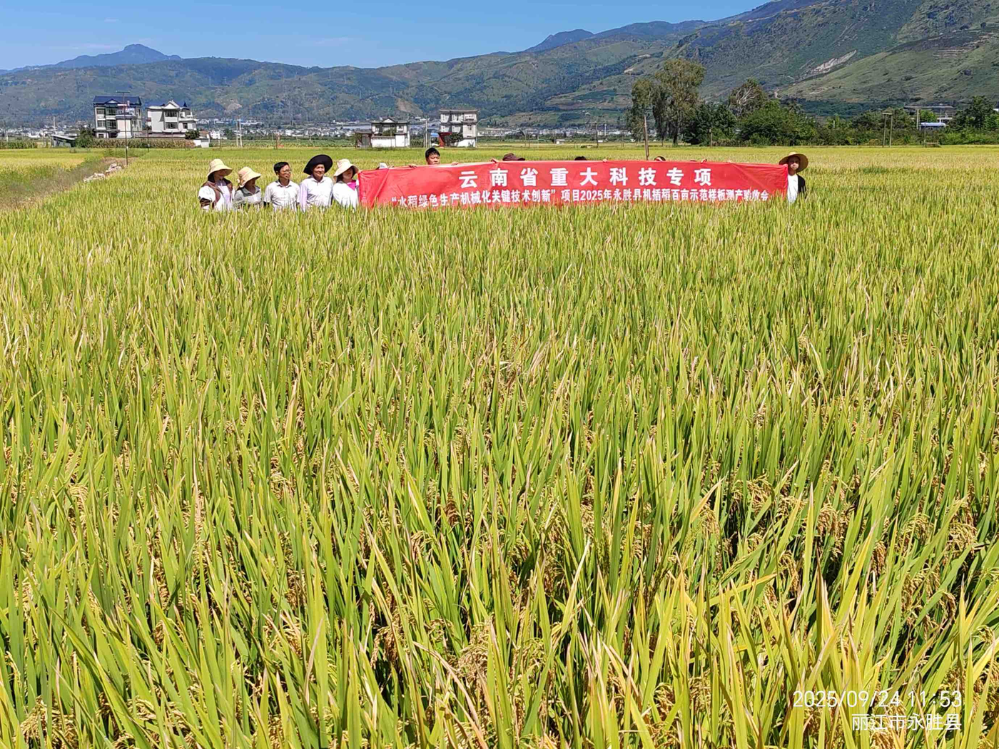 9月的丽江市永胜县涛源镇,金色的稻浪随风翻滚,云南省自主选育的部标一级优质米水稻新品种“云两优9801”正在测产。