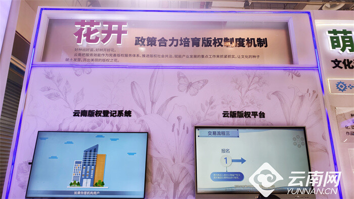 云南展区以“有一种叫云南的生活——版权花开彩云南”为主题,以“版权之花的生长”为线索生动讲述云南版权故事。云南出版集团有限责任公司、西双版纳自游文旅有限公司、楚雄彝家公社民族文化发展有限公司、云南万融实业集团有限公司、建水县木忠陶坊等14家云南文化企业携代表性版权作品参展,重点展示了非遗、出版、影视、文创等多个领域的版权成果,以及数智时代版权的新技术、新应用和新成果,彰显云南版权在价值转化中赋能云南文化产业高质量发展、助力云南文化强省建设,推动云南经济社会高质量发展中的重要作用。