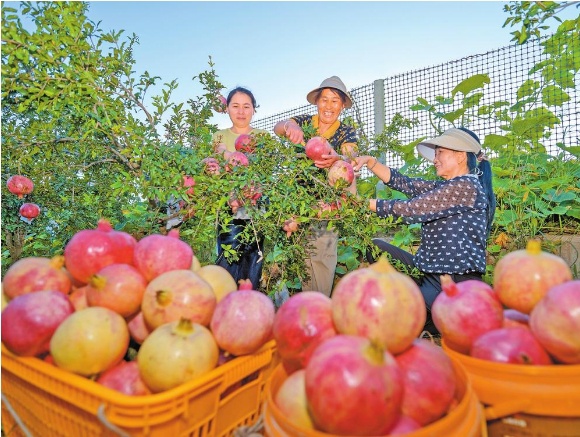 金秋时节,宾川县3万余亩软籽石榴迎来丰收。红彤彤的果实挂满枝头,果农们抢抓市场窗口采摘、分拣、装箱,田间地头一派繁忙景象。