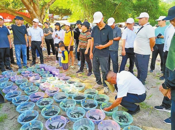 公证员核对鱼苗规格。 记者 李春林 摄