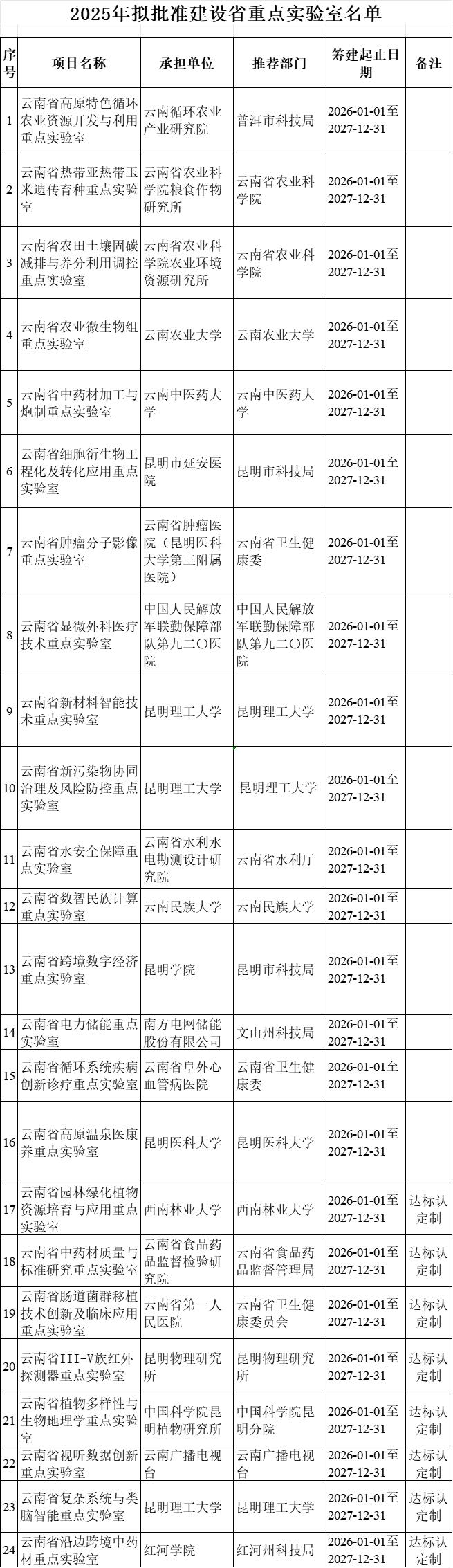原标题:正在公示!云南拟批准建设24个省重点实验室