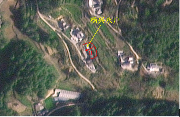 板桥镇秋山村七组滑坡区及受威胁农户分布影像图
