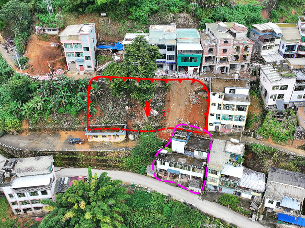 水寨乡棕元村大部分居民点采用切坡方式建房,形成了多处不稳定斜坡,严重威胁人民群众居住安全。10月13日16时,苏家坟村民小组巡查员在巡查时发现,组内马义刚户院场出现开裂、变形迹象,随即上报村委会和乡自然资源所,并迅速将现场照片上传区自然资源局。区自然资源局与驻县联乡技术指导站及时到现场研判,立即撤离了马义刚户4人。10月14日7时,该滑坡整体滑动,造成马义刚户主房受损,墙体出现10厘米宽裂缝并下沉,院场出现40厘米宽裂缝。得益于及时有效的撤离措施,成功保护了1户4人的生命安全。