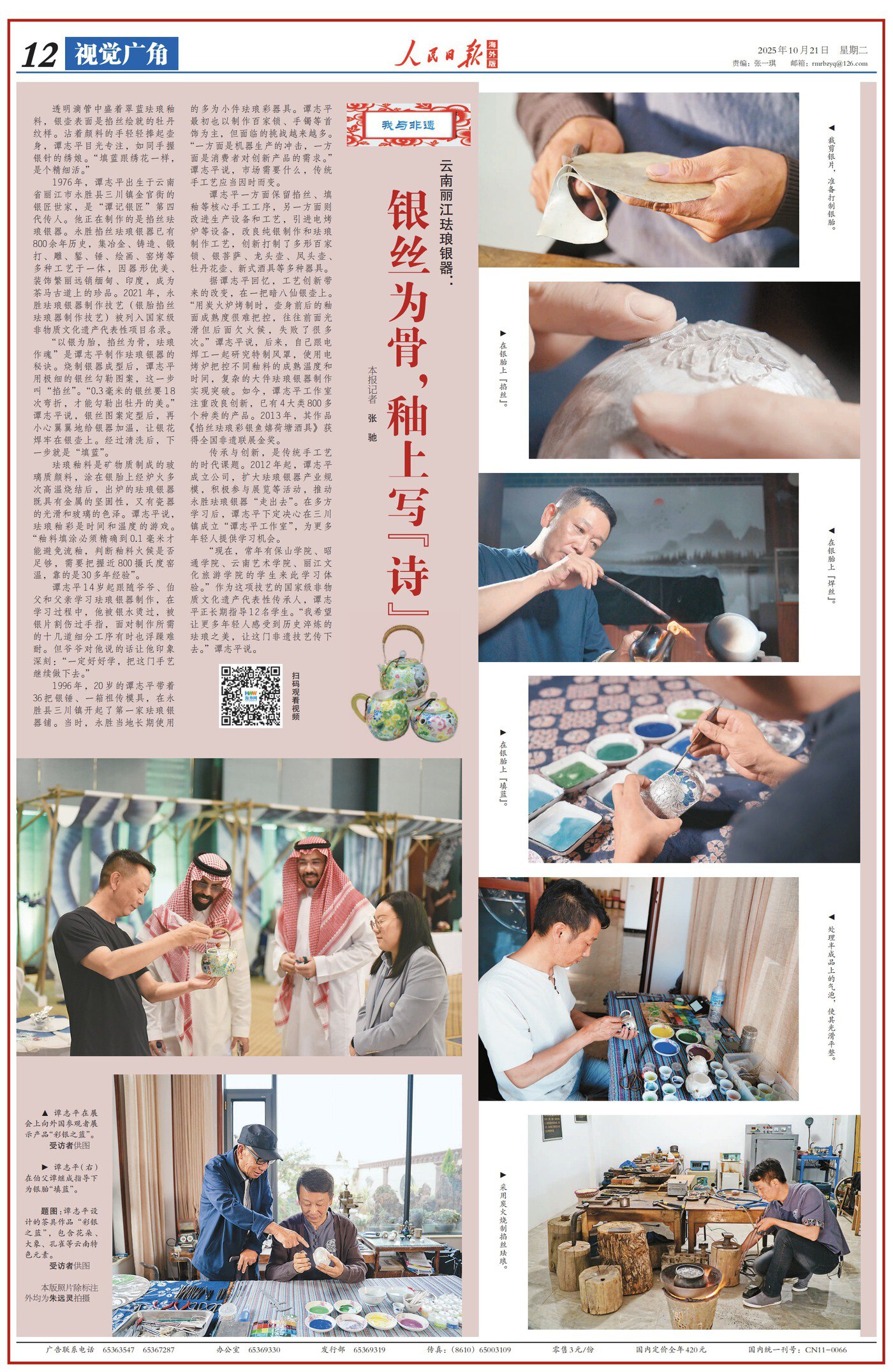 原标题:银丝为骨,釉上写“诗”,人民日报海外版整版点赞云南丽江珐琅银器