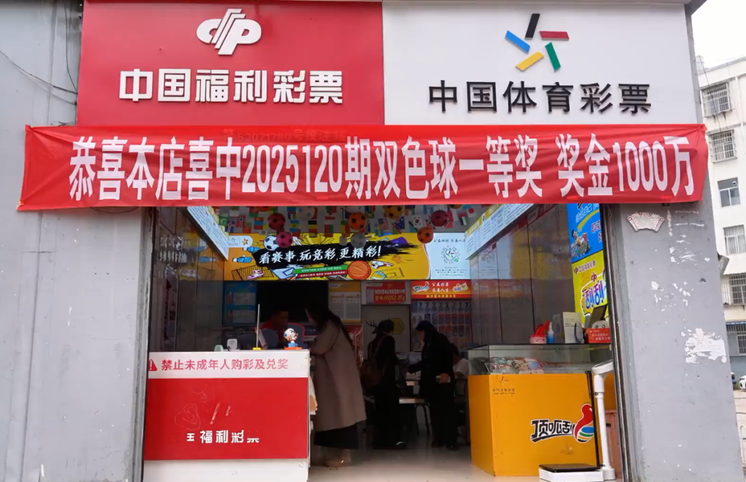 10月20日上午,彩票店门口挂起中奖横幅、放起鞭炮,吸引了很多彩民前来购买彩票。