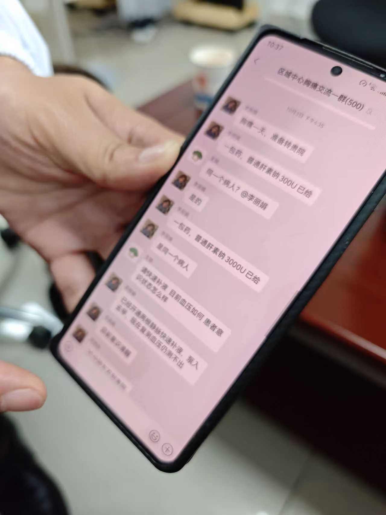 “我们每次到达基层,就会把相关科室的医生拉进业务交流的群。”付明用向记者展示了手机中的多个聊天群,基层医生将医学影像、检查数据、治疗反馈等发在聊天群中,医院的医疗专家则针对这些内容进行远程指导。“如今,基层医院的硬件设施已经足够做到对很多病情的‘早发现、早治疗’,相信在我们的共同努力下,可以让更多群众在家门口享受优质医疗资源带来的健康幸福生活”。